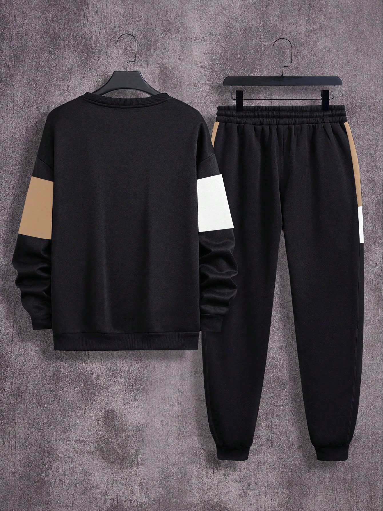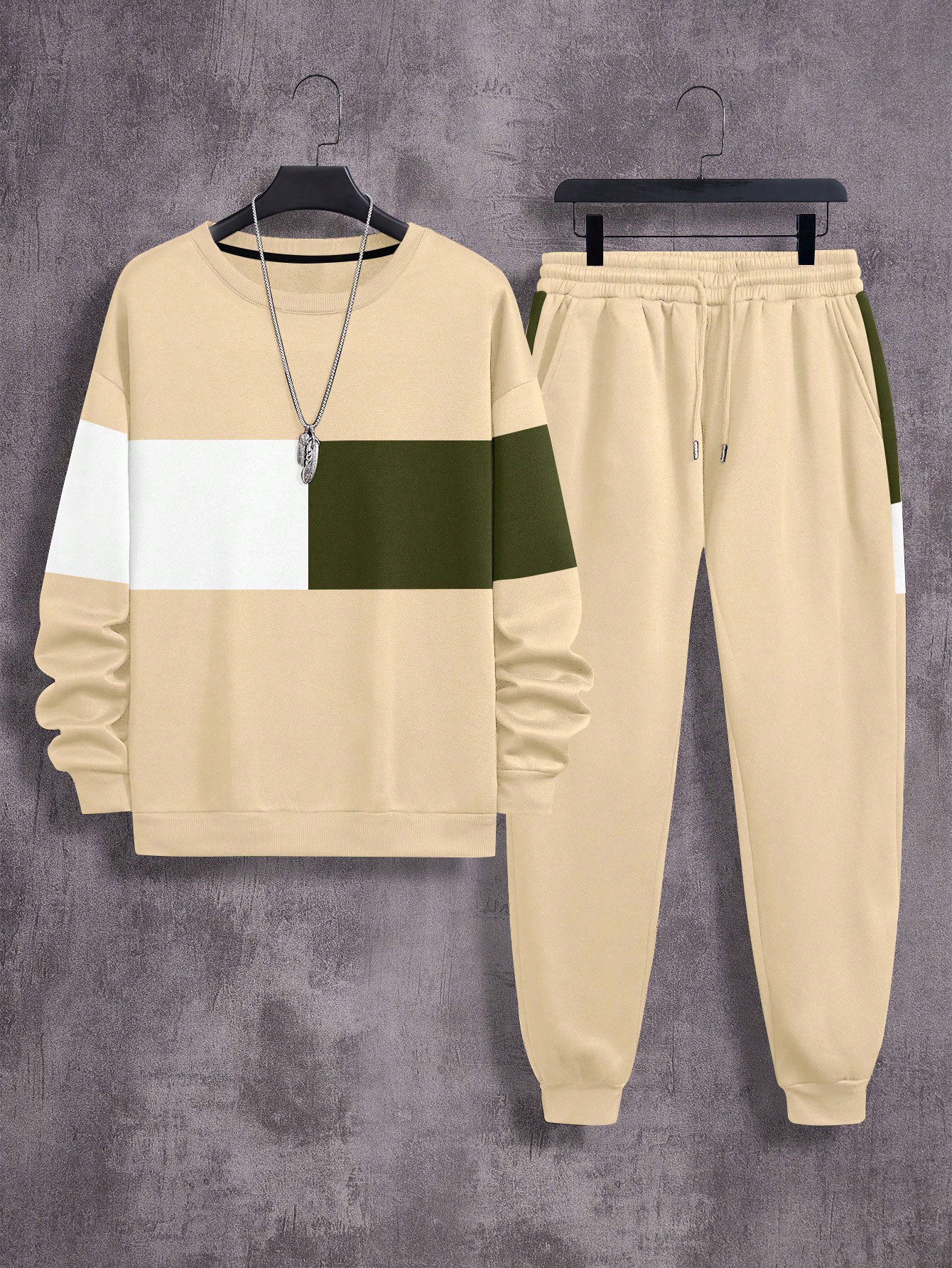 2pcs Men's Casual Contrast Color Crew Neck Sweatshirt And Drawstring Waist Sweatpants Set, Spring And Autumn