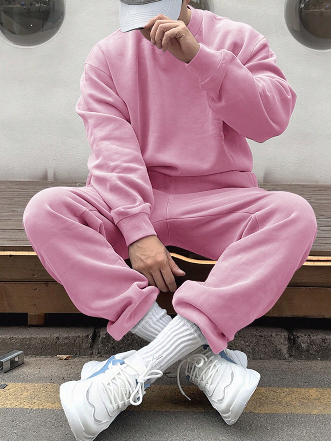 2pcs Men Solid Color Round Neck Long Sleeve Sweatshirt And Sweatpants Casual Outfit, Autumn/Winter