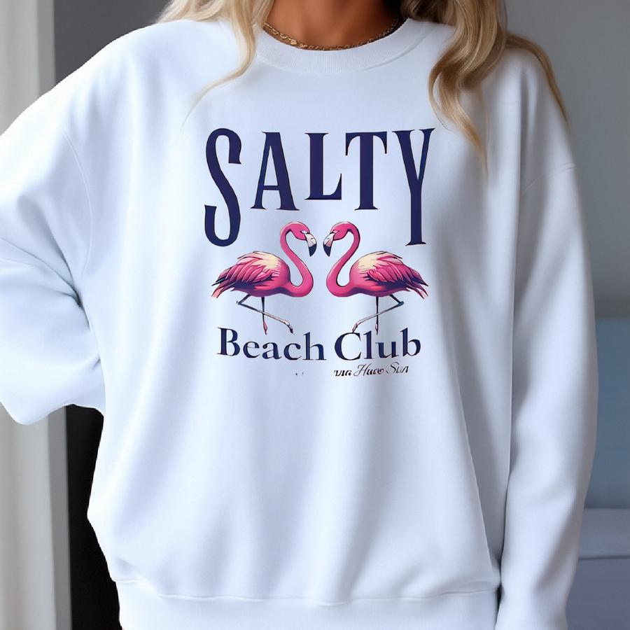 Salty Beach Club Can Cooler: Tropical Flamingo Drink Holder Sweatshirt