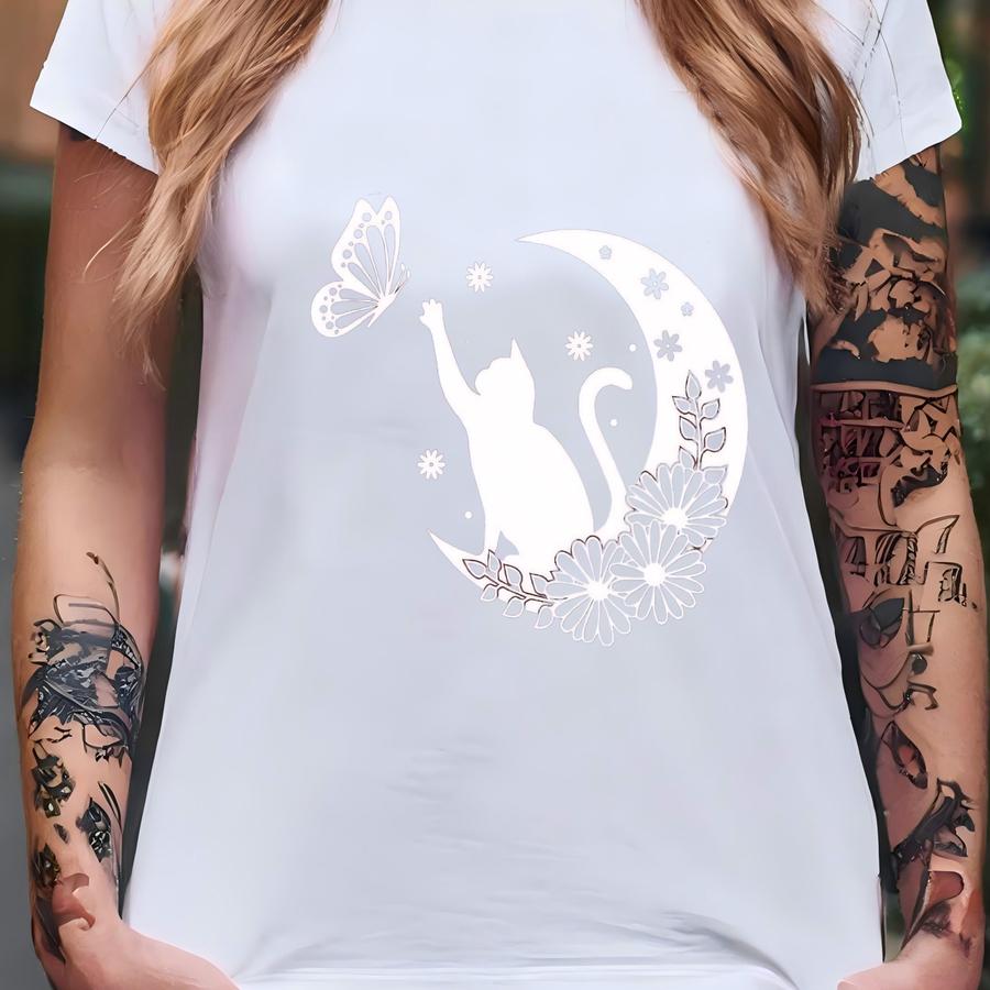 Floral Cat Shirt, Floral Cat Tee, Cat Lover Shirt, Animal Lover Tee, Cat And Butterfly Tee, Floral Animal Shirt, Gift For Her, Gift For Mom T-shirt