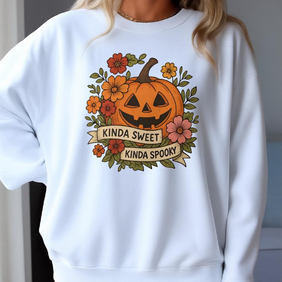 Floral Halloween Pumpkin Tee: Kinda Sweet Kinda Spooky Cotton Shirt Sweatshirt