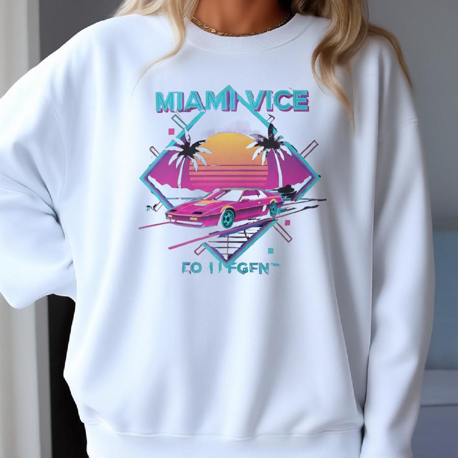 Miami Vice Hoodie: 80s Retro Car, Neon Sunset, Synthwave Apparel Sweatshirt