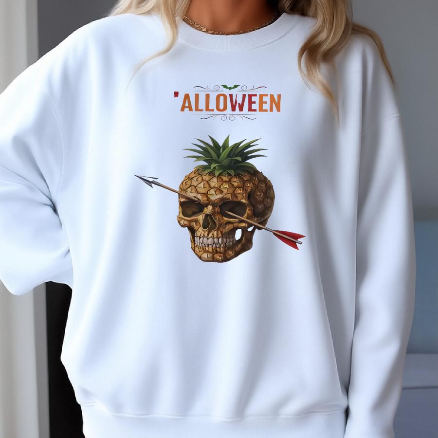 Pineapple Skull Halloween Hoodie: Spooky Tropical Sweatshirt Sweatshirt