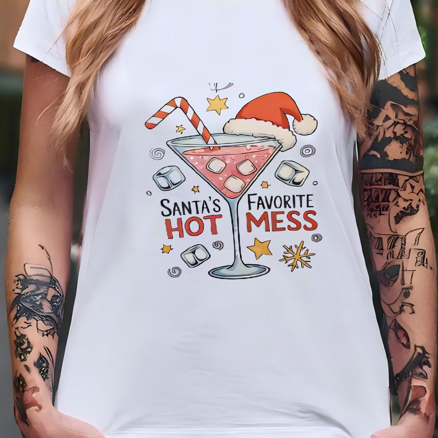 Santa's Favorite Hot Mess Baby Tee, Y2k Shirt, 90s Baby Tee Shirt, Christmas Party Baby Tee, Christmas Martini Shirt, Santa Claus Baby Tee T-shirt