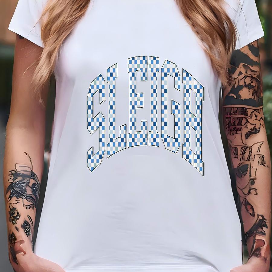 Checkered Retro Sleigh Sweatshirt, Merry Christmas Sweatshirt, Festive Holiday Sweater, Cute Christmas Gift, Varsity Aesthetic Xmas Crewneck T-shirt