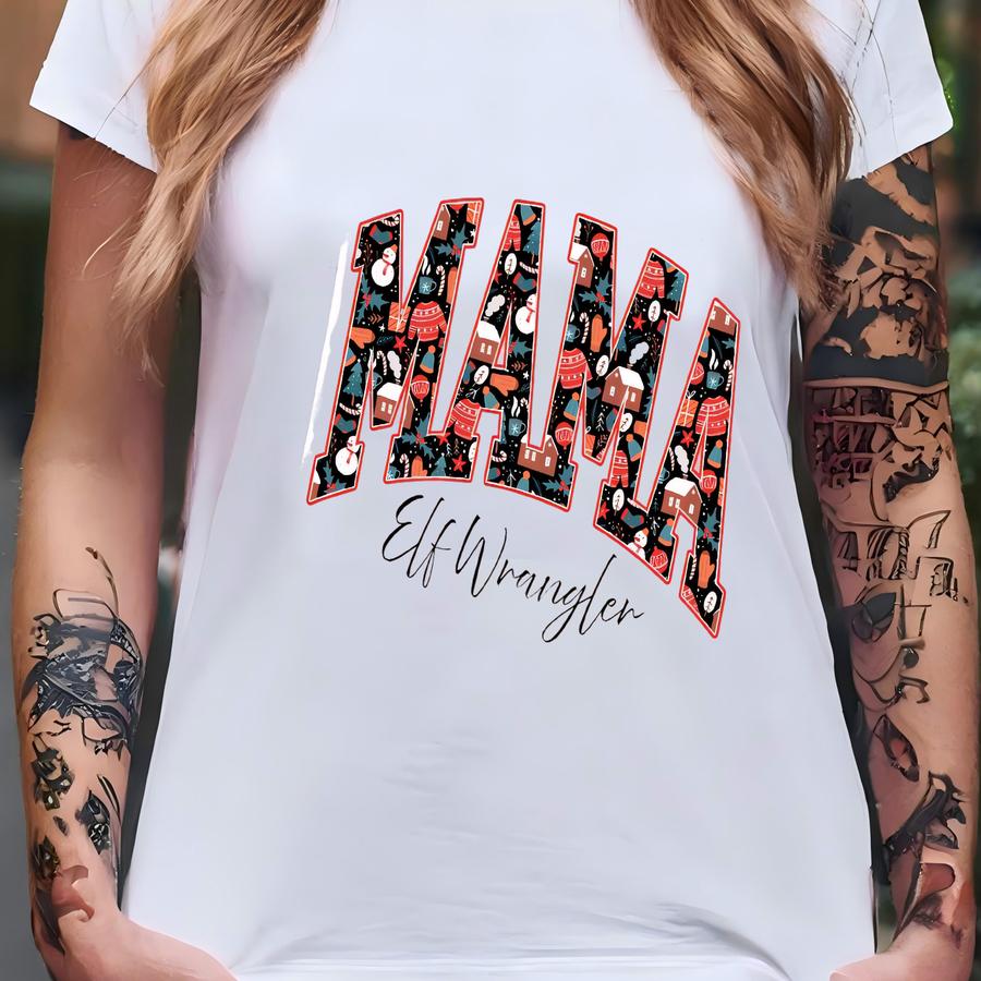Festive Xmas Graphic Tee, Cozy Winter Mama Shirt, Cute Christmas Top For Mom, Holiday Mom Hoodie, Funny Mama Christmas Shirt T-shirt