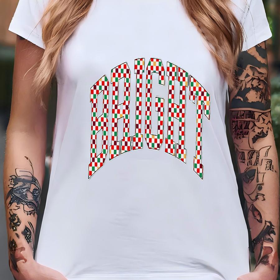 Checkered Retro Bright Sweatshirt, Merry Christmas Sweatshirt, Festive Holiday Sweater, Cute Christmas Gift, Varsity Aesthetic Xmas Crewneck T-shirt