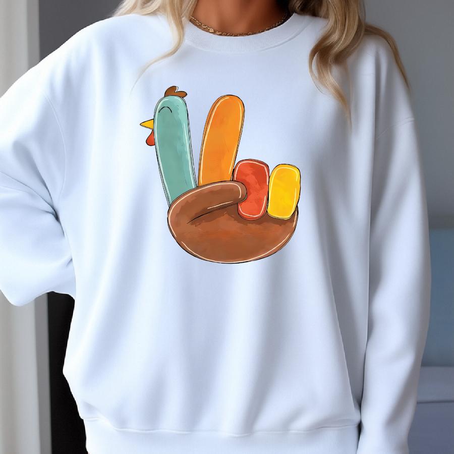Peace Sign Turkey Sweatshirt: Funny Thanksgiving Fall Graphic Sweatshirt