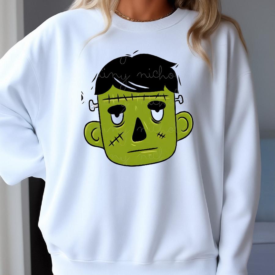 Frankenstein Scarecrow Pumpkin Name Plate Png, Hand Drawn, Plaque, Applique, Digital Download, Kids Graphic, Fall, Spooky Season Sweatshirt