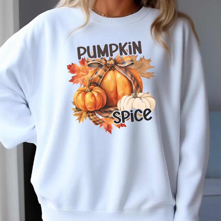 Gildan Pumpkin Spice Crewneck Sweatshirt Unisex Shirt, Coquette Bow Sweater, Halloween Plus Size Oversized Shirt, Trick Or Treat Tee Sweatshirt