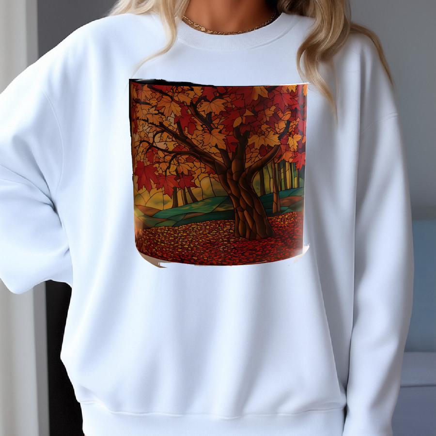 Stained Glass Autumn Tree Mug Fall Favorite Nature Art Coffee Cup Cozy Harvest Thanksgiving Decor Housewarming Perfect Gift Idea For Her Sweatshirt