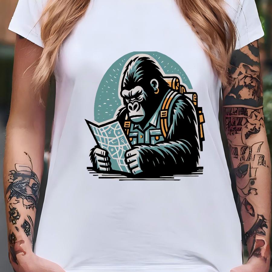 Gorilla Shirt. Gorilla Gift. Jungle Hoodie. Jungle Gift. Explorer Shirt. Explorer Gift. Map Reader Shirt. Adventure Tee. Adventure Gift T-shirt