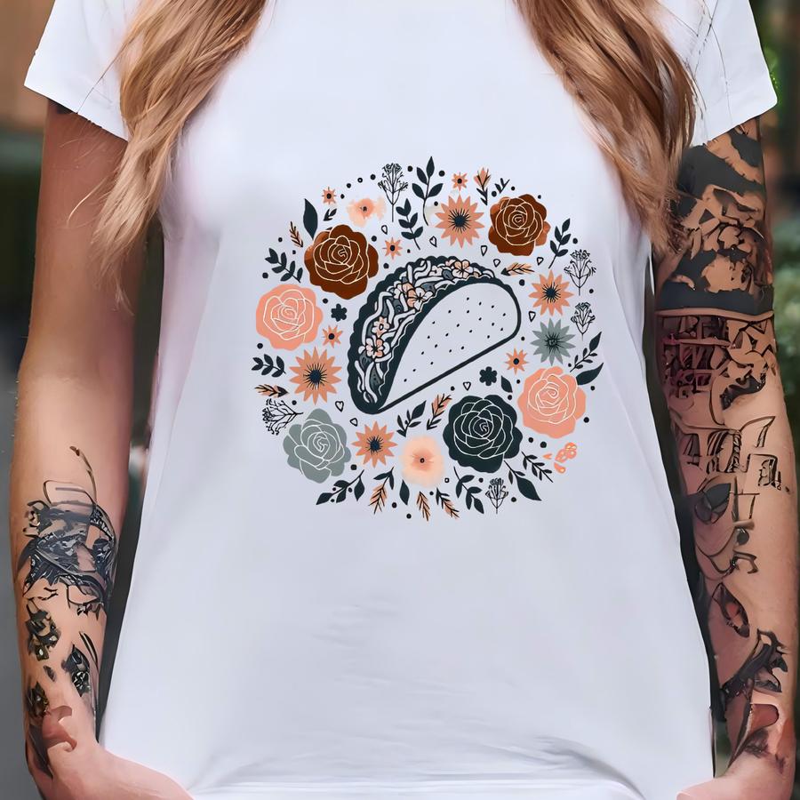 Taco Shirt. Taco Gift. Floral Shirt. Flower Tee. Taco Hoodie. Taco Lover Tee. Taco Lover Gift. Foodie Shirt. Foodie Gift. Mexican #fc1005 T-shirt