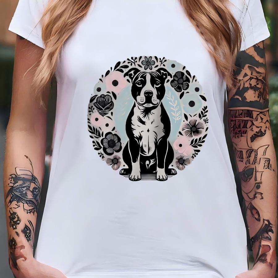 Staffy Sweater. Staffy Bull Gift. Stafshire. Floral Dog Sweater. Dog Mom Sweater. Dog Floral Design. Pet Lover Sweater. Flower #fc1027 T-shirt