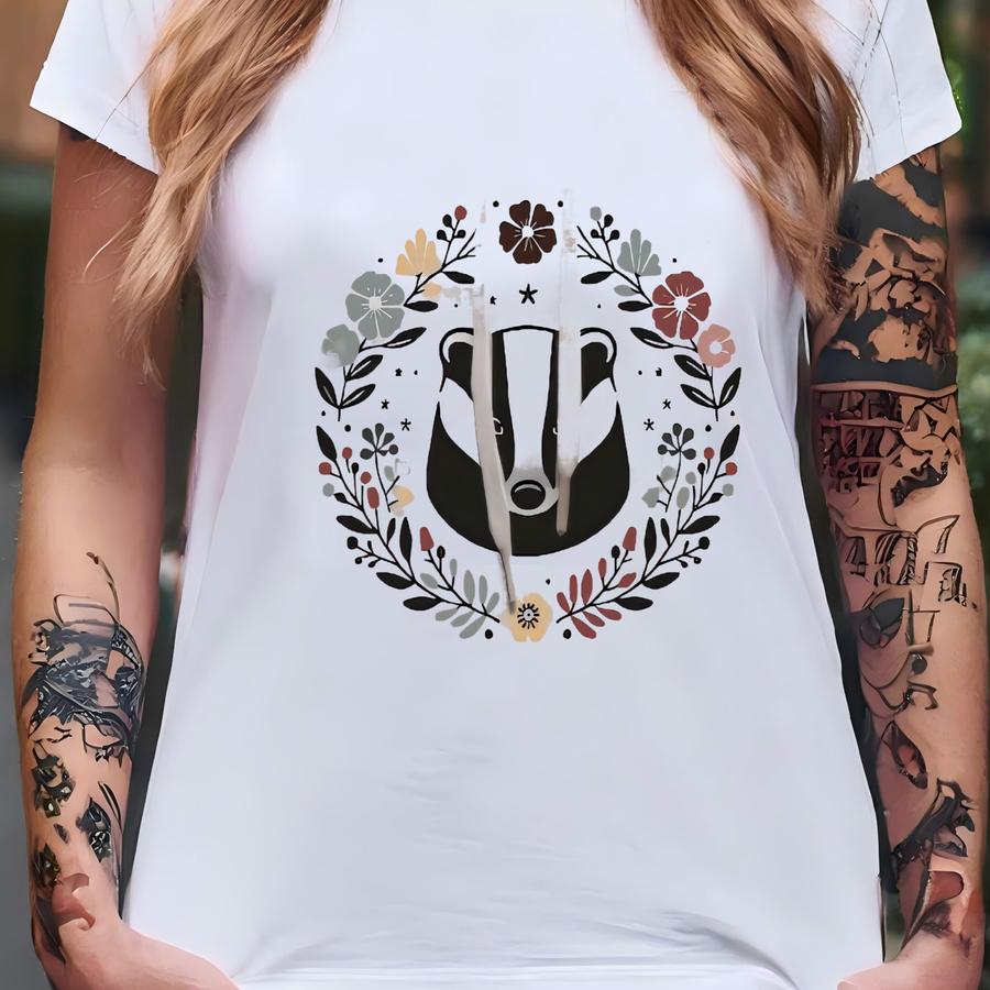 Badger Hoodie. Badger Gift. Floral Hoodie. Flower Hoodie. Badger Sweatshirt. Wildlife Hoodie. Wildlife Gift. Animal Hoodie #fc295 T-shirt