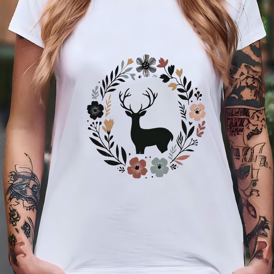 Deer Sweater. Deer Crewneck. Floral Sweater. Flower Sweater. Deer Hunter Gift. Forest Animal Top. Wildlife Sweater. Nature Lover Gift #fc239 T-shirt