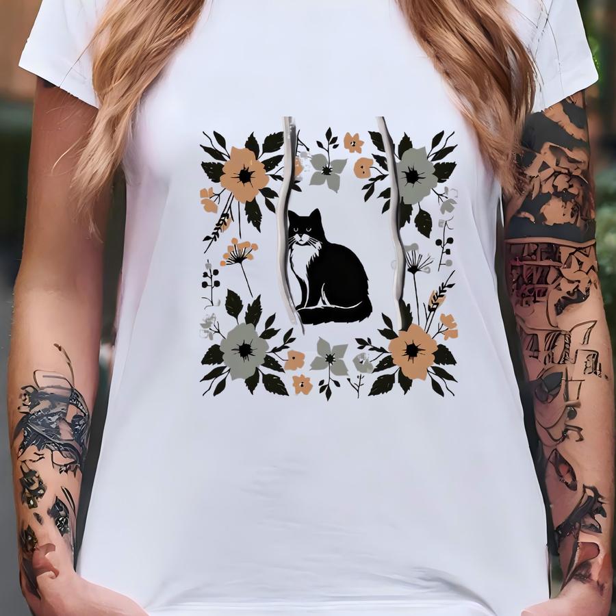 Cat Hoodie. Cat Lover Gift. Floral Hoodie. Flower Hoodie. Cat Sweatshirt. Cat Owner Hoodie. Cat Person Gift. Feline Hoodie. Pet Lover #fc80 T-shirt