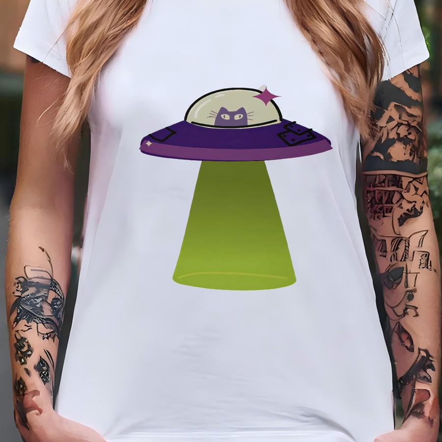Ufo Cat Coffe Mug Funny Cat Lover Mug Cute Cat In Ufo Tea Mug Ufo Gift For Colleague Funny Secret Santa Girl Gift Under 20 T-shirt