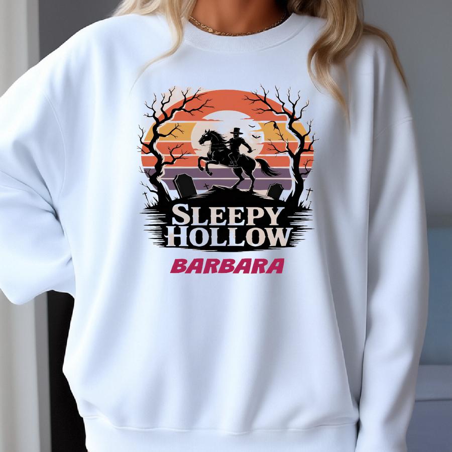 Personalized Halloween Tee – Spy Hollow Headless Horseman Graveyard Scene, Cotton Canvas Sweatshirt