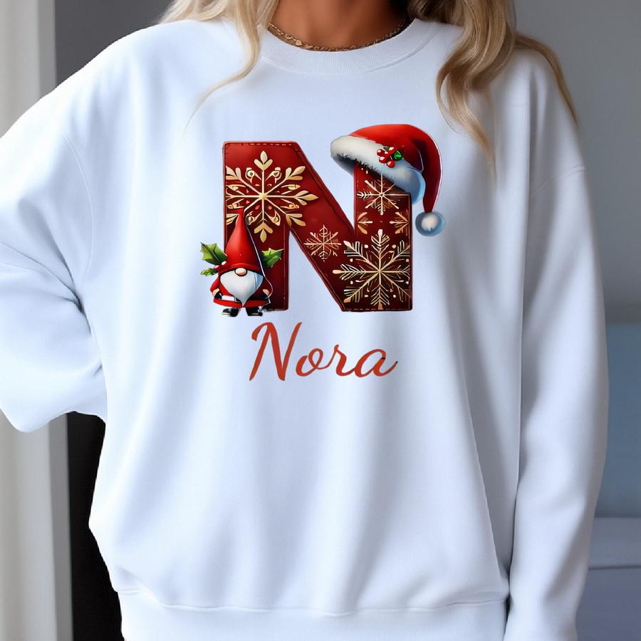 Personalized Christmas Gnome Hoodie: Initial Name, Holiday Family Apparel Sweatshirt