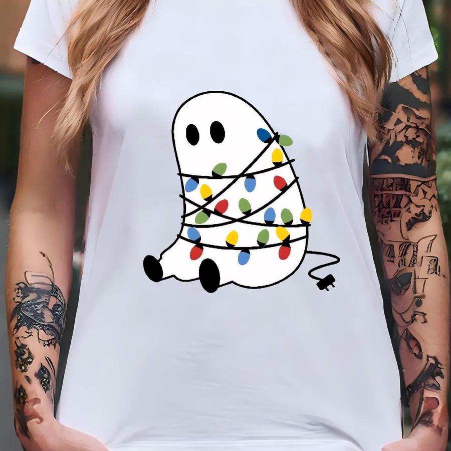 Christmas Spirit Catching Lights Funny Holiday Sweatshirt Christmas Jingle Crewneck Xmas Lights Sweater Cute Ghost Xmas Lights Crewneck T-shirt