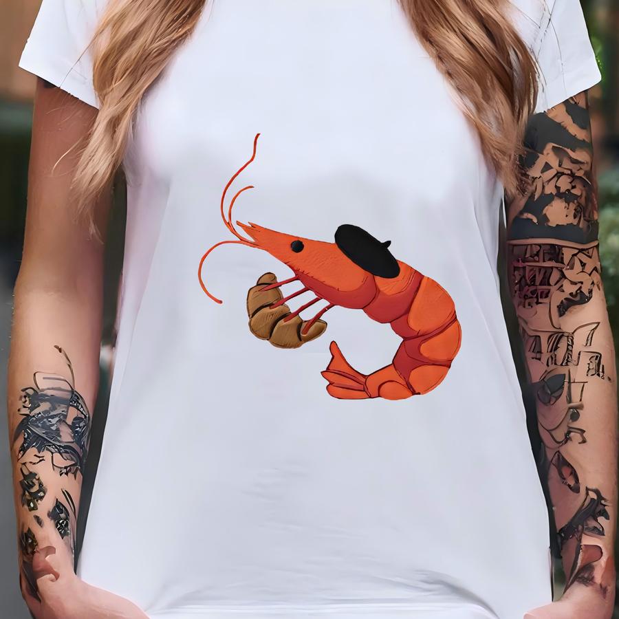 French Shrimp Shirt, Funny Shrimp Lover Hoodie, Tiny French Shrimp Croissant Fisherman Tee, Quirky Seafood Art T-shirt