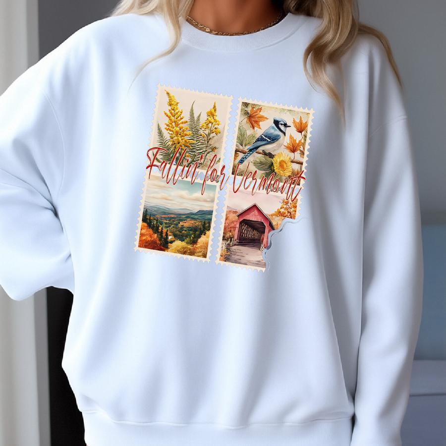 Vermont Fall Scene T-shirt: Blue Jay, Covered Bridge, Cotton Sweatshirt