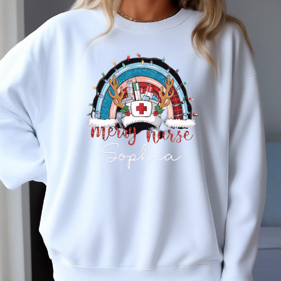 Custom Christmas Nurse Shirt, Christmas T-shirt, Personalized Xmas Nurse Tee, Christmas Nurse Gift, Nurse Gift, Christmas Gift,christmas Tee Sweatshirt