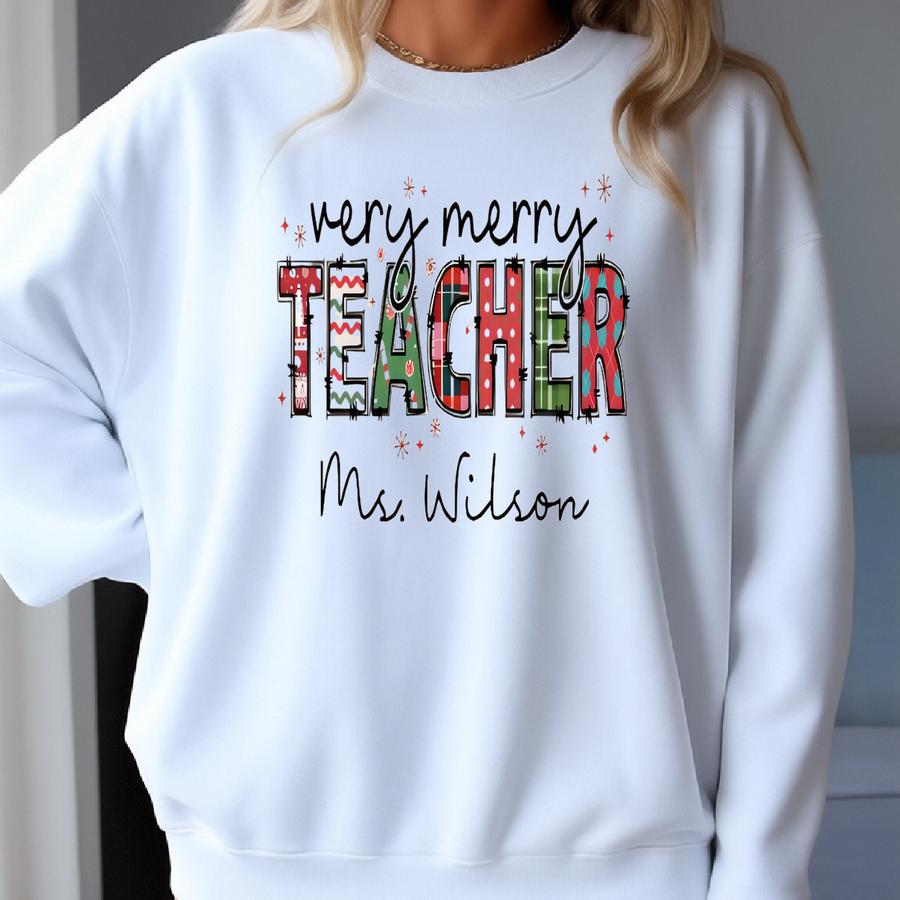 Custom Christmas Teacher Sweatshirt, Xmas Teacher Shirt, Christmas Gift, Personalized Christmas Teacher Hoodie, Teacher Appreciation Gift Sweatshirt