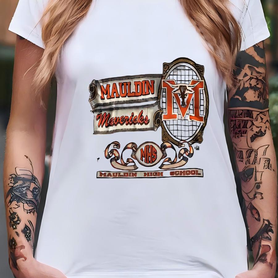 Vintage 90s Fruit Of The Loom Tag Mauldin Mavericks Highschool Big Logo Printed Sweatshirt Crewneck Color Grey Size X-large T-shirt