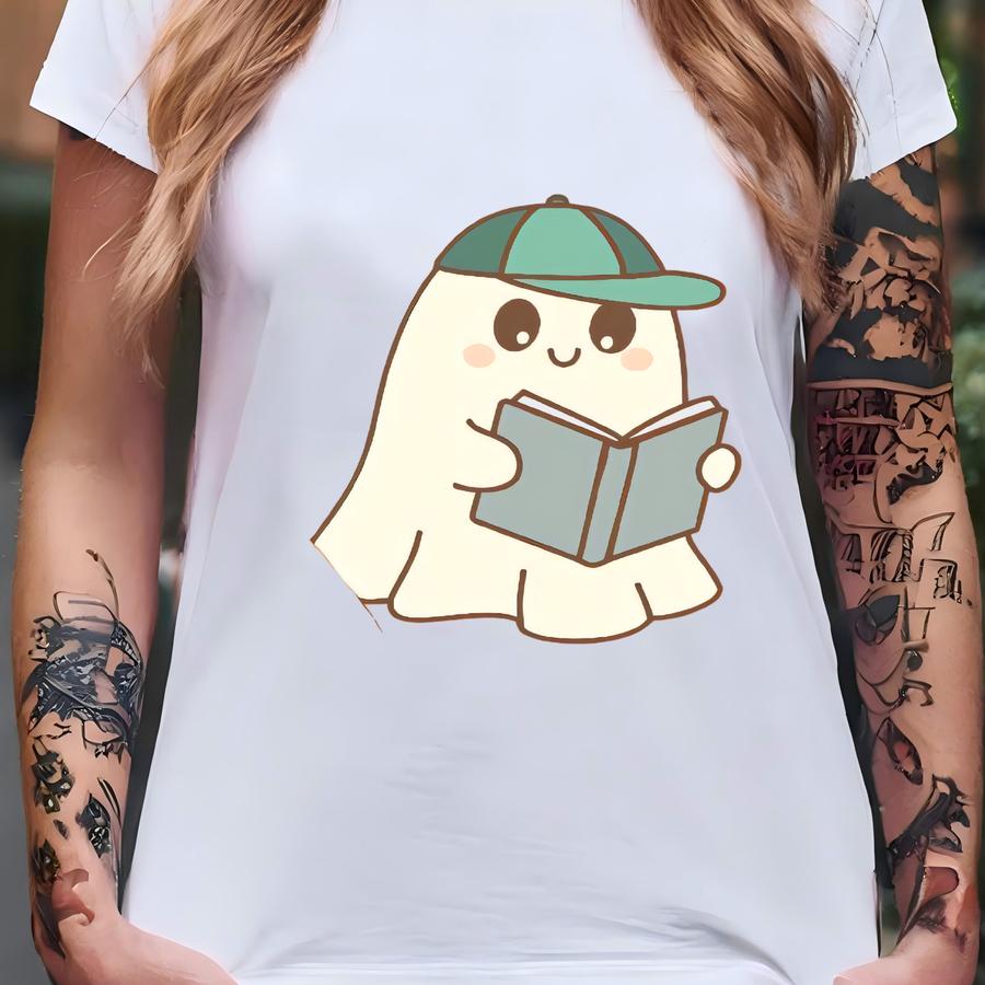 Ghost In A Cap Reading A Book Sweatshirt, Couple Ghost Sweatshirt, Cozy Book Lover Sweater, Halloween Sweatshirt, Lightweight Unisex Sweater T-shirt
