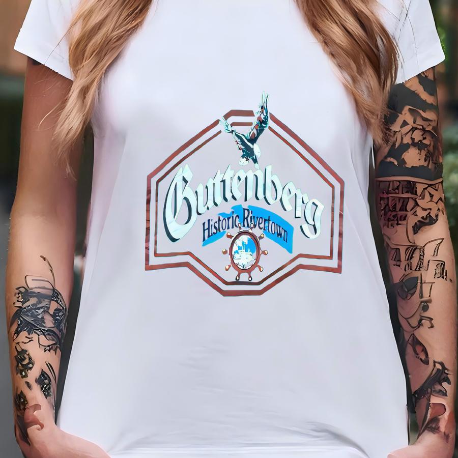 Vintage 90s Jerzees Tag Guttenberg Historic Rivertown Spellout Sweatshirt Big Logo Printed Crewneck Pullover Guttenberg Green Size X-large T-shirt