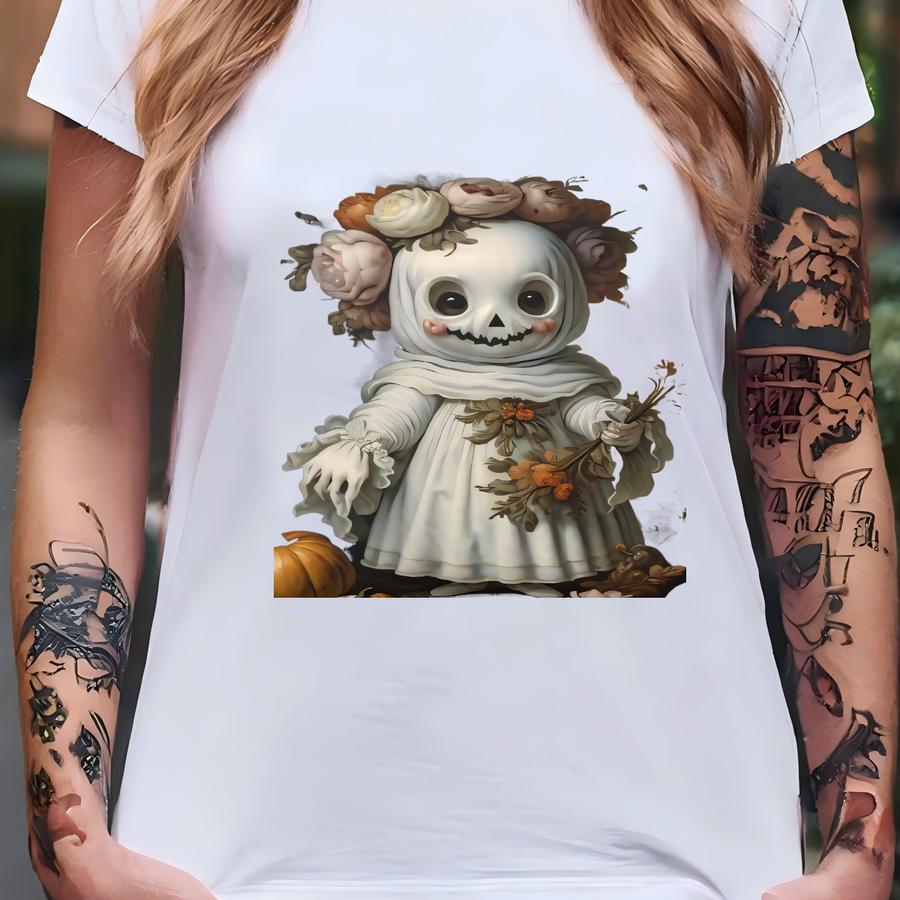 Spooky Floral Ghost Halloween Accent Pillow, 14x14, Moody Vintage Halloween Pillow T-shirt