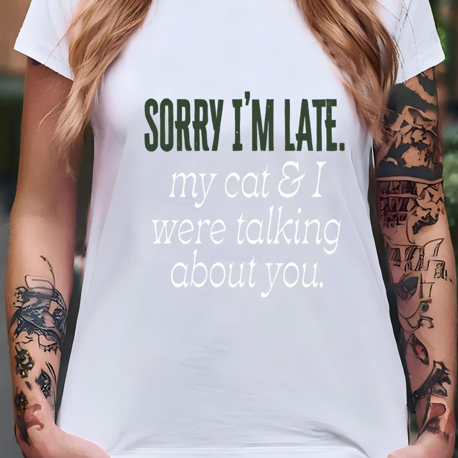Funny Cat Hoodie: Sorry I'm Late - Heather Sage Bella Canvas T-shirt