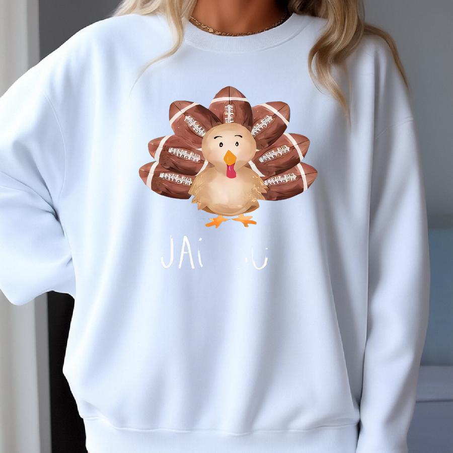 Personalized Football Turkey Baby Romper, Custom Name Toddler Thanksgiving Outfit, Turkey Fall Romper, Cute Baby Boy Girl Holiday Bodysuit Sweatshirt