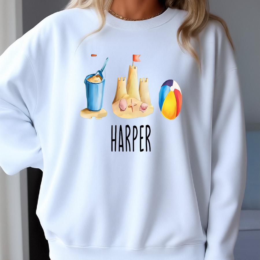Personalized Sandcastle Baby Romper Short Sves, Summer Beach Romper, Beach Vacation Bodysuit, Custom Summer Boy Romper Sweatshirt