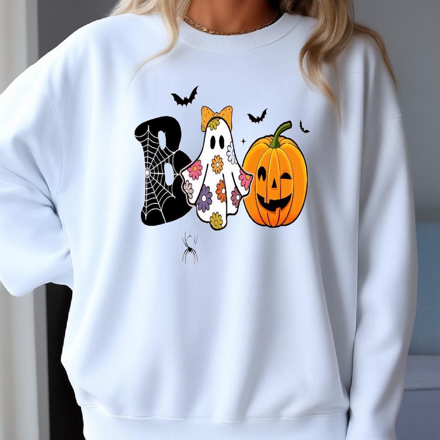 Boo Halloween Baby Romper Sweatshirt, Spooky Season Romper, Ghost Floral Halloween Baby Bodysuit, First Halloween Bubble Romper Sweatshirt