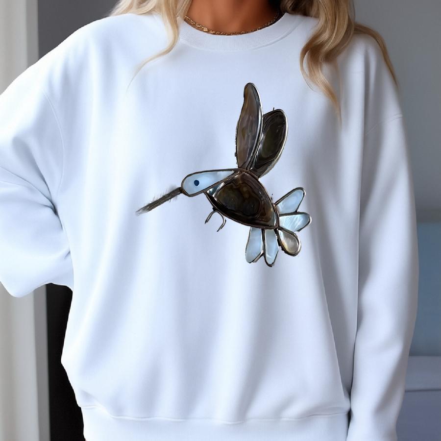 Vintage Taxco Aplaca Alabone And Pearl Hummingbird Pendant/brooch. Made In Mexico. Sweatshirt