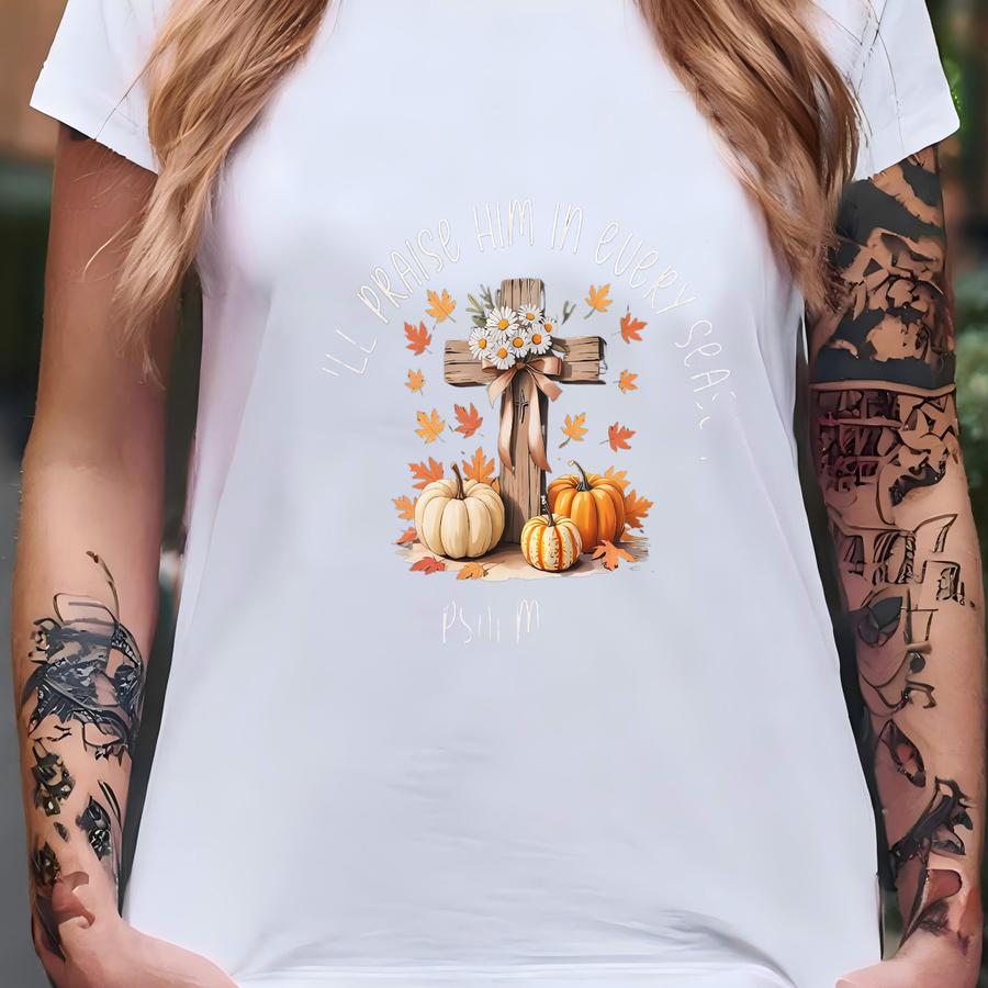 ® Hoodie, I Will Praise Him In Every Season Shirt, Pumpkin Spice Shirt, Jesus Pumpkin Shirt, Fall Crewneck, Autumn, Christian T-shirt