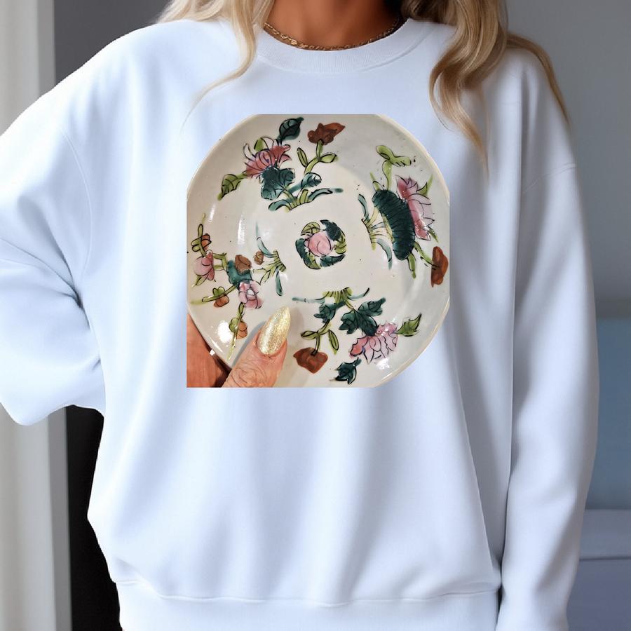 Antique Chinese Famille Rose Porcelain Dish - Antique Chinese Plate W/ Hand Painted Flowers And Peach Sweatshirt