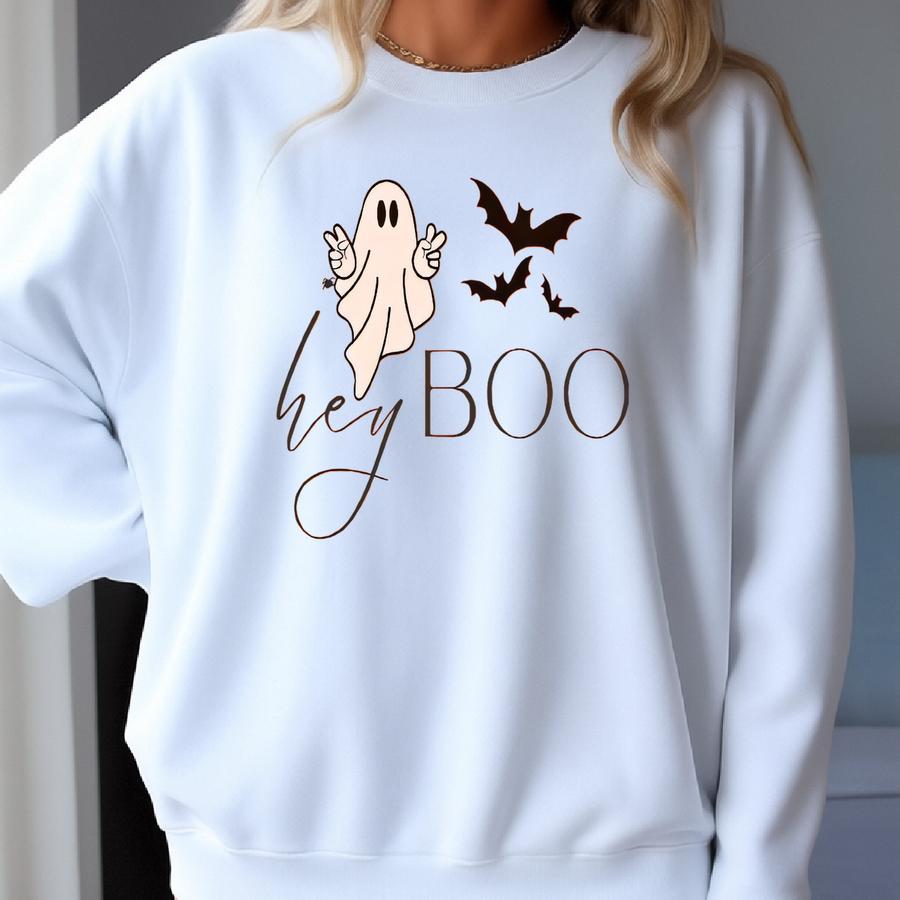 Hey Boo Halloween Shirt, Ghost Tee, Funny Fall Shirt, Spooky Season Tshirt, Shirts For Women, Ghouls, Costume, Cute Sweatshirt