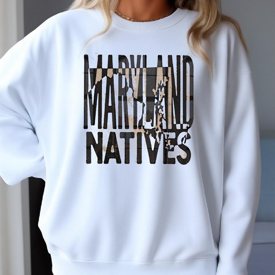 Maryland Natives Vintage Ink Press Style Wall Art Print, Maryland State Decor, Chesapeake Bay Maryland Gic Home Art, Rustic Al Art Sweatshirt