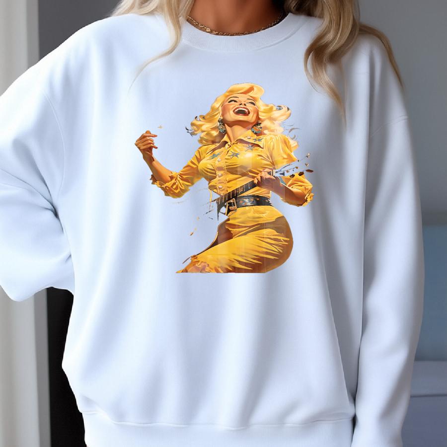 Cosmic Cowgirl Playing Guitar Art Print | Retro Space Cowgirl Wall Art, Vintage Cowgirl Art, Surreal Western Art Print, Southwest Desert Art Sweatshirt