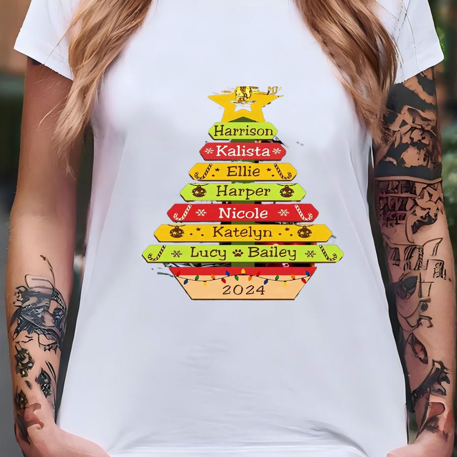 Custom Christmas Tree Ornament With Family Names, Family Christmas Ornament, Christmas Tree Name Ornament 2024, Family Name Ornament T-shirt