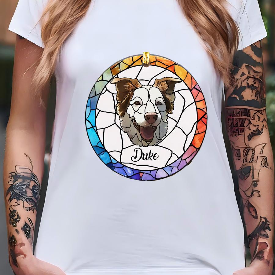 Custom Pet Portrait Ornament| Dog Memorial, Custom Dog Portrait From Photo, Sympathy Gifts, New Dog Ornament, Pet Photo Ornament With Led T-shirt