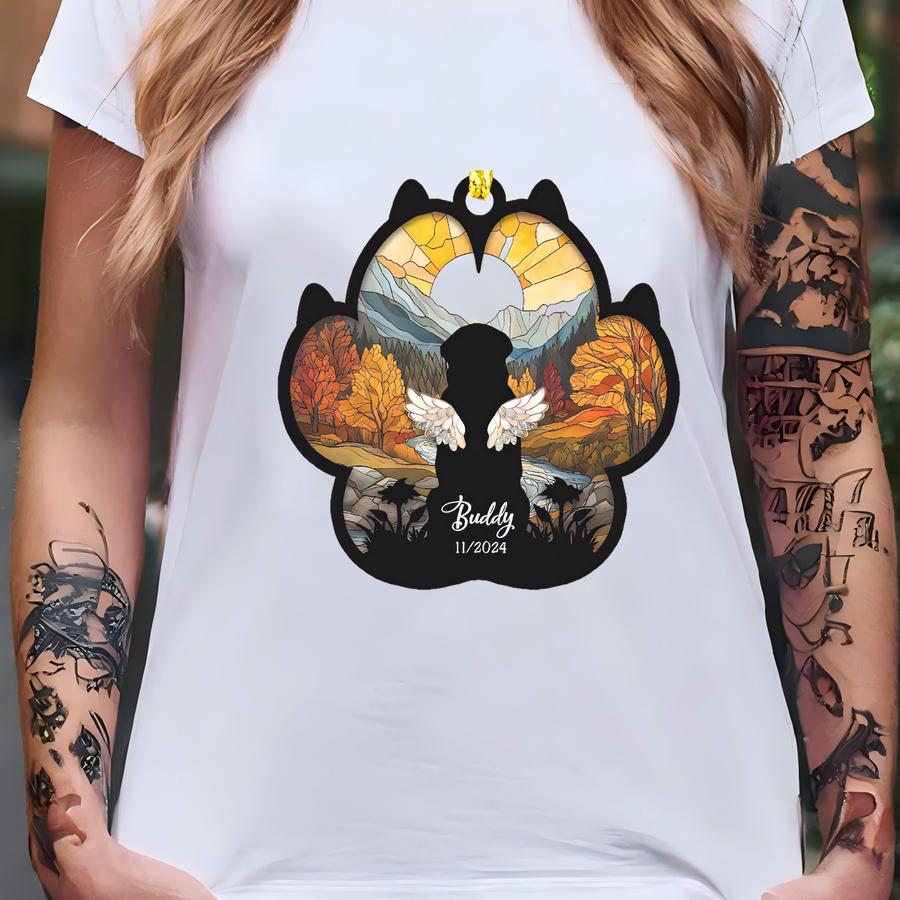 Custom Dog Memorial Suncatcher| Loss Of Pet Sympathy Gift| Christmas Gift| Gift For Dog Lovers, Christmas Tree, Window Decor, Car Deco T-shirt