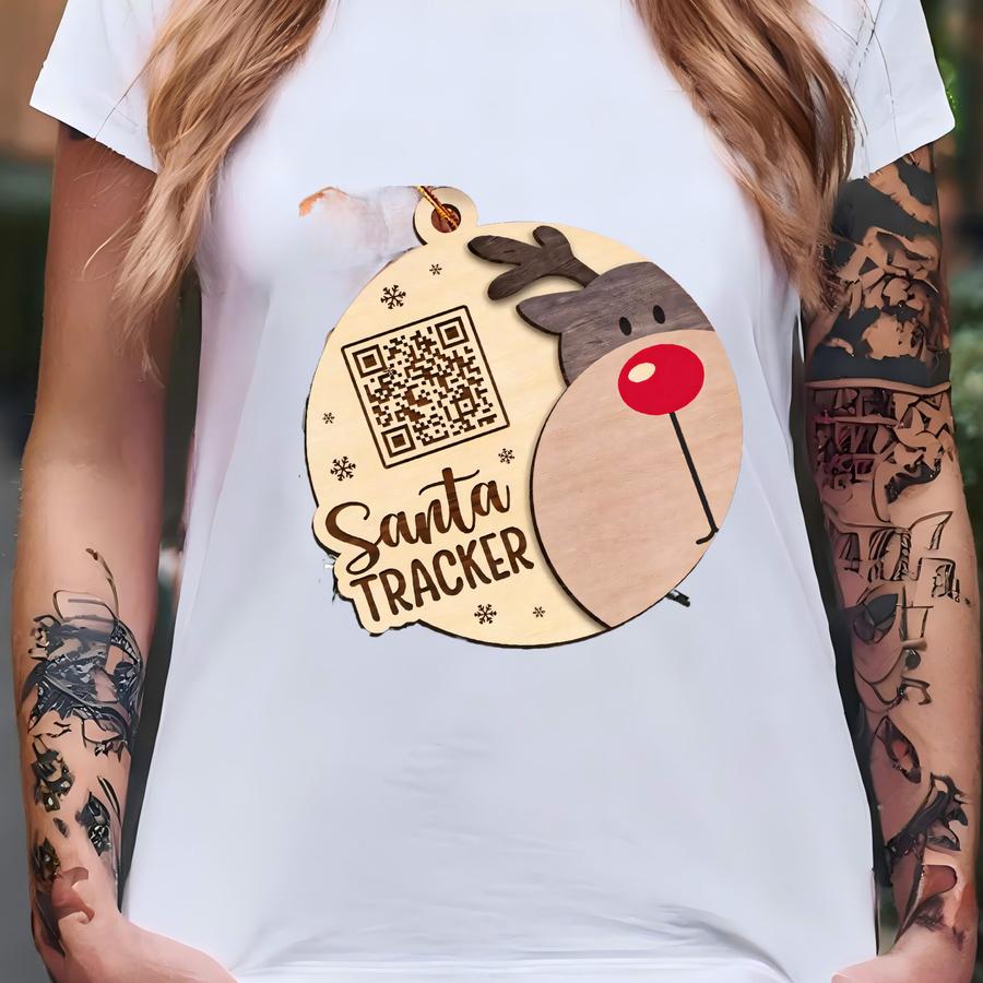 Custom Christmas Santa Tracker Qr Code Ornament With Adorable Reindeer, Scan To Track Ornament, Reindeer Ornament, Christmas Tree Decor T-shirt