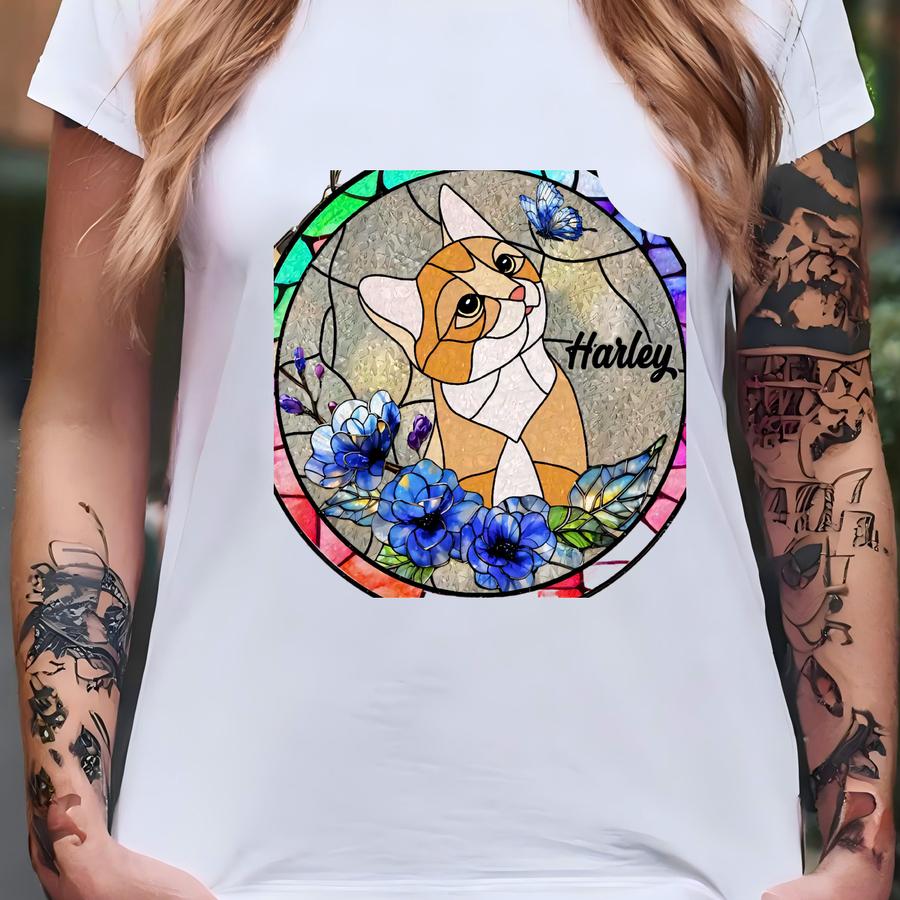 Custom Pet Portrait Glass Suncatcher, Pet Loss Gift, Stained Glass Cat Memorial, Cat Mom Gift, Memorial Gift, Custom Cat Portrait From Photo T-shirt