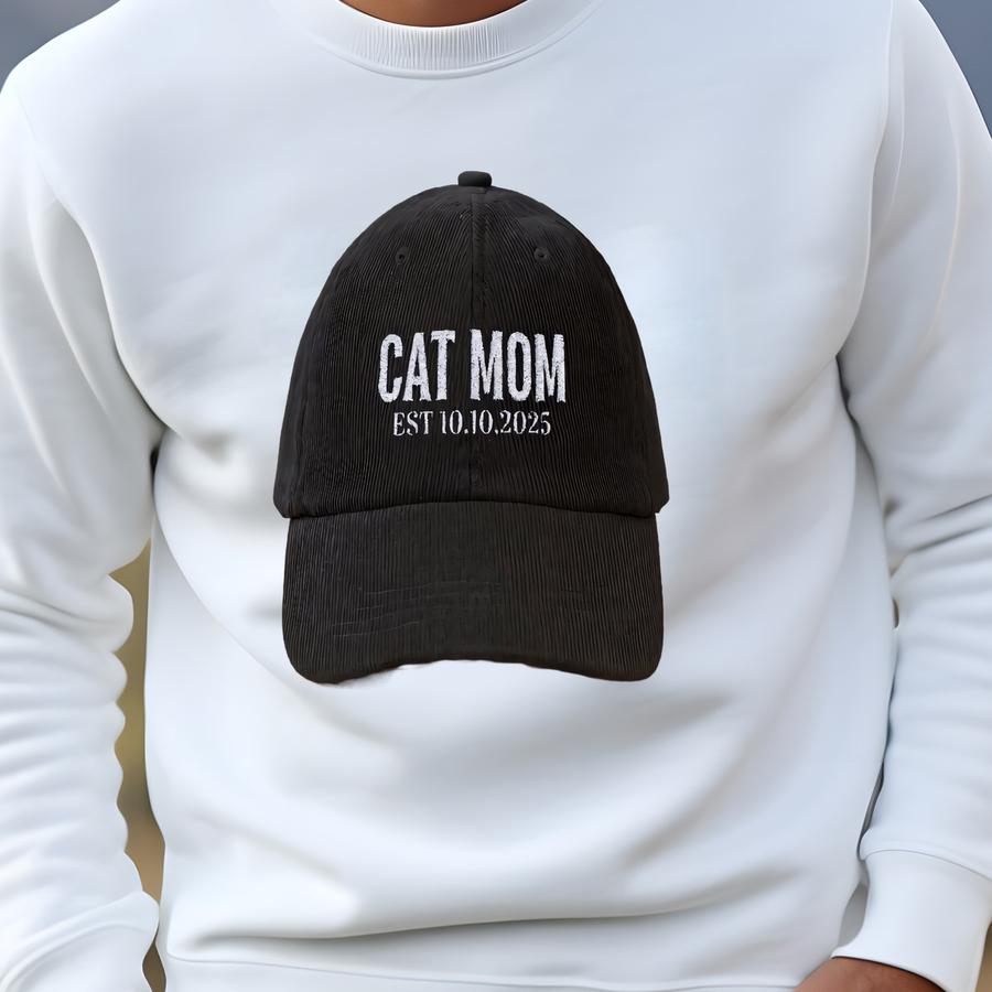 Cat Mom Y Cap, Custom Cat Lover Hat, Gift For Cat Mom, Personalized Pet Parent Baseball Cap, Cat Mom Dad Hat Sweatshirt
