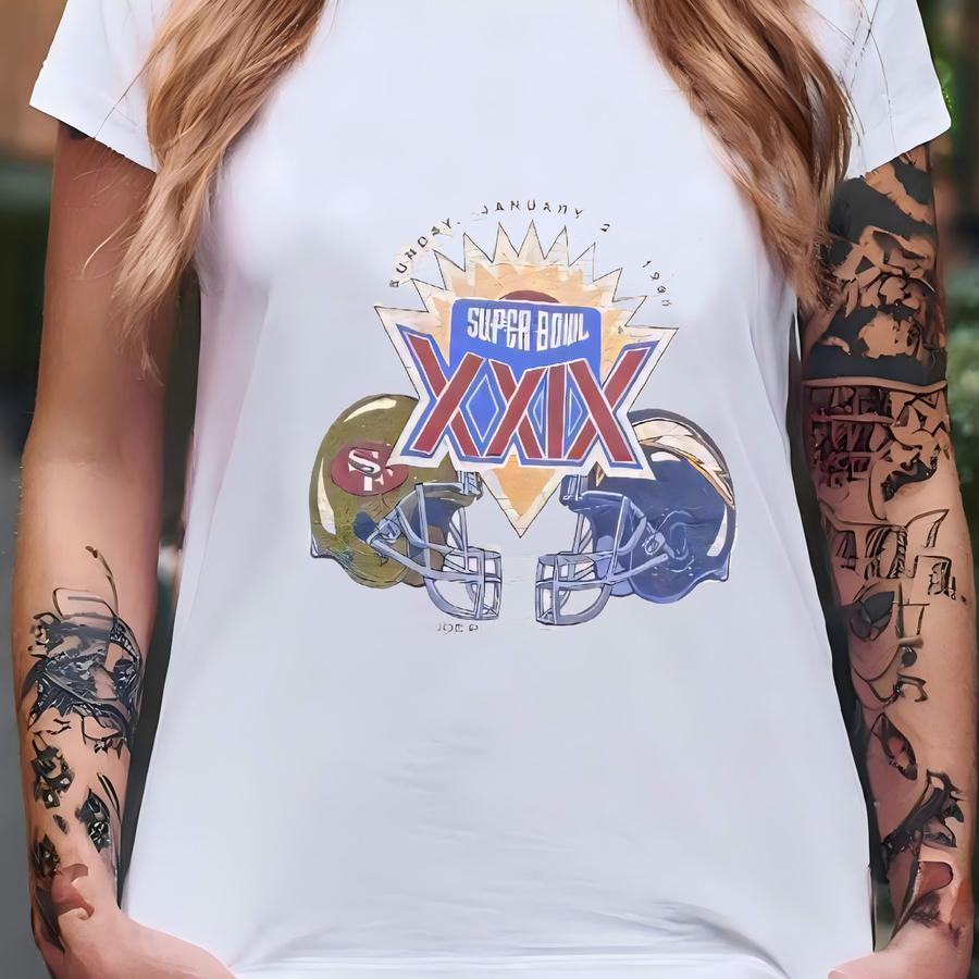Vintage San Francisco 49ers Vs Sand Diego Chargers Super Bowl Xxlx 1995 T Shirt Tee Made Usa Size Xtra Large Xl Football California 90s T-shirt